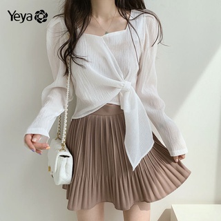 Áo kiểu YEYA tay dài cổ vuông thiết kế đơn giản thời trang cho nữ