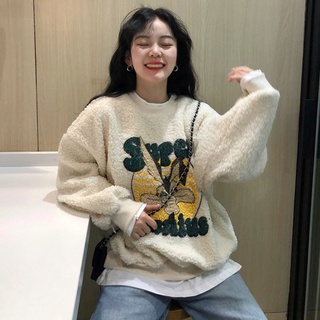 Áo Nỉ Nữ Dài Tay Cổ Tròn Form Rộng Thời Trang Hàn