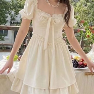 Đầm Ngắn Cổ Vuông Tay Phồng Màu Trơn Thời Trang Mùa Hè 2023 Mới Cho Nữ
