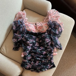 Áo Kiểu Cổ Vuông Họa Tiết Hoa Mùa Hè Phong Cách Mới Cho Nữ