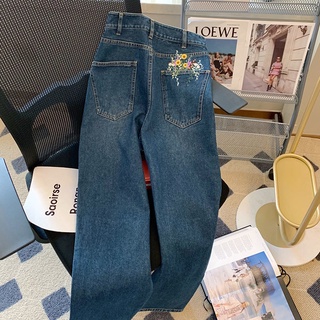 Quần Jean Ống Rộng Thêu Hoa Màu Xanh Dương Phong Cách Retro Thời Trang Xuân Hè Hàng Mới Dành Cho Bạn Nữ
