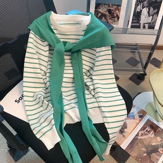 Áo Sweater Dệt Kim Tay Dài Dáng Rộng Họa Tiết Kẻ Sọc Thời Trang Xuân Thu Cho Nữ