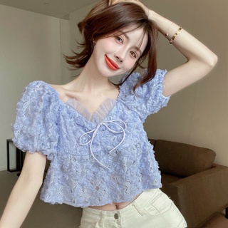 Áo Kiểu Tay Phồng Ngắn Cổ Chữ V Thời Trang Mùa Hè Mới Tinh Tế Dễ Phối Đồ Cho Nữ
