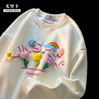 Áo Nỉ Cổ Tròn Họa Tiết Hoa Thời Trang Xu Hướng Cho Nữ
