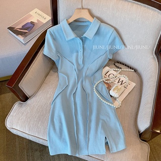 Đầm Ngắn Ôm Dáng Cổ Polo Màu Xanh Dương Phong Cách Mới Mùa Hè Cho Nữ