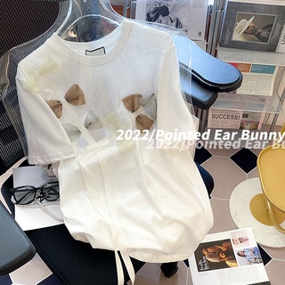 Áo Thun Tay Ngắn Màu Đen Phối Lưới Đính Nơ Thời Trang Mùa Hè Cho Nữ
