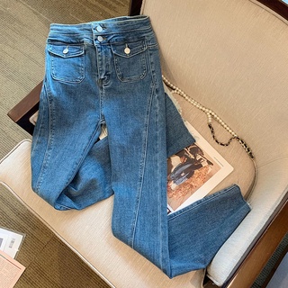 Quần Jean Nữ Cạp Cao Dáng Ôm Màu Xanh Dương Phong Cách Mới