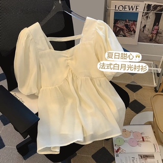 Áo Kiểu Chiffon Tay Phồng Cổ Vuông Thiết Kế Mới Thời Trang Mùa Hè Cho Nữ