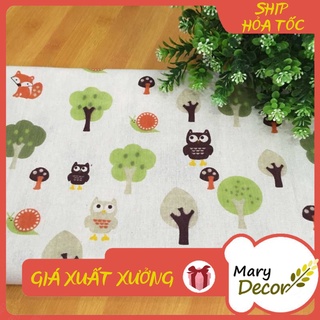 Vải linen họa tiết Hoạt hình cú mèo V-K03