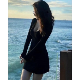 Đầm Body Trễ Vai Tay Dài Tôn Dáng Gợi Cảm Phối Cổ Yếm _[ẢNH_THẬT ] Phượng Shop1812