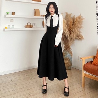 Set Áo Hai Dây Màu Đen Phối Chân Váy Ngắn Lưng Cao Cỡ Nhỏ Thời Trang Xuân Trẻ Trung Cho Nữ