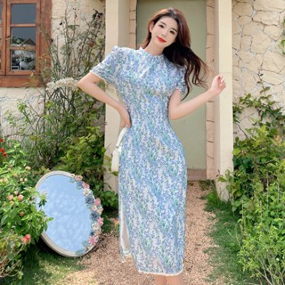 Mới Sườn Xám Cách Tân In Họa Tiết Thời Trang Quyến Rũ Cho Nữ
