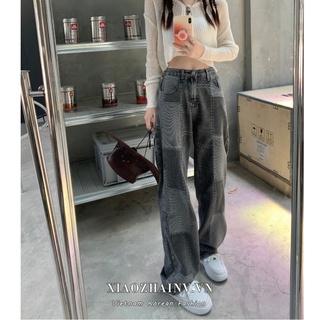 Quần jean XIAOZHAINV lưng cao ống rộng thời trang dành cho nữ