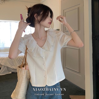 Xiaozhainv Áo Kiểu Tay Ngắn Màu Trơn Thời Trang Mùa Hè Dễ Phối Đồ