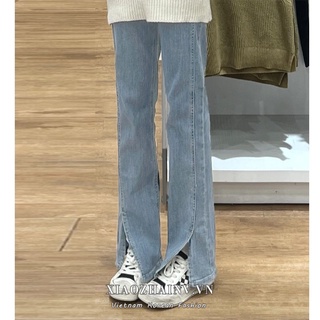 Quần jean Xiaozhainv lưng cao ống đứng xẻ tà phong cách Hàn Quốc thời trang cho nữ