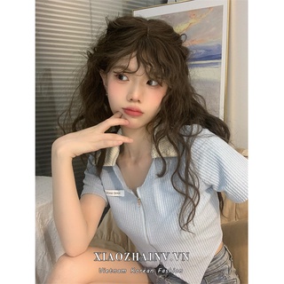 Xiaozhainv Áo polo Dệt Kim Tay Ngắn Phong Cách Hàn Quốc Thời Trang Cho Nữ