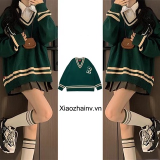 Áo sweater dệt kim Xiaozhainv dáng rộng cổ V phong cách Hàn Quốc cho nữ