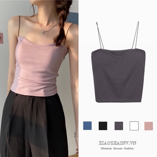 Áo croptop hai dây Xiaozhainv cổ chữ u 5 màu sắc dễ phối đồ hợp thời trang