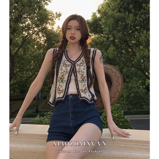 Áo kiểu XIAOZHAINV vải dệt kim mỏng không tay dáng rộng kiểu retro xinh xắn cho nữ