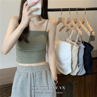 Áo croptop Xiaozhainv hai dây màu trơn có đệm ngực thời trang mùa hè quyến rũ cho nữ