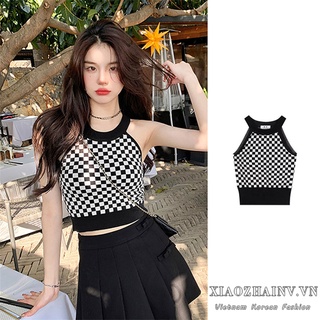 Áo croptop Xiaozhainv dệt kim không tay thiết kế quyến rũ phong cách thời trang cho nữ