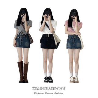Chân váy XIAOZHAINV jean lưng cao thiết kế mới trẻ trung thời trang dành cho nữ