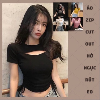 Áo Zip Hở Ngực Rút Eo 5 Màu
