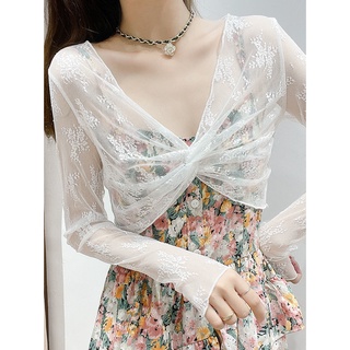 Áo Khoác Cardigan Chống Nắng Dáng Ngắn Tay Dài Phối Ren Rỗng Phong Cách Cổ Tích Thời Trang Mùa Hè Mới