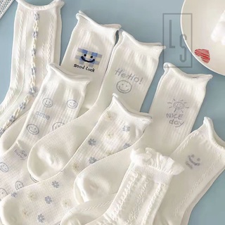 Vớ Nhún Cao Cổ Dễ Thương Trắng Tinh Khôi - Tất Cổ Nhún Trắng Họa Tiết