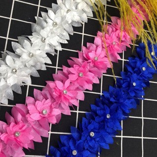 2 Yards Dây Ruy Băng Ba Chiều Bằng Vải Voan Phối Ren Hoa Dùng Trang Trí Thủ Công