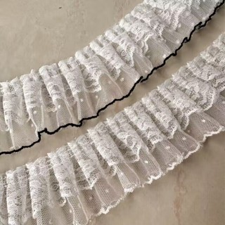 1 yard Vải Tuyn Hai Lớp Phối Ren Xếp Ly Chiều Dài 5cm Dùng Trang Trí DIY