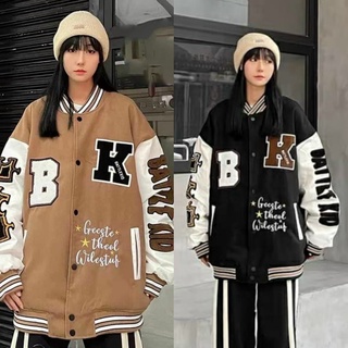 Áo Varsity Jacket - Áo Khoác Bomber Cardigan họa tiết chữ B.K phối bo Siêu Hot nam nữ mặc được