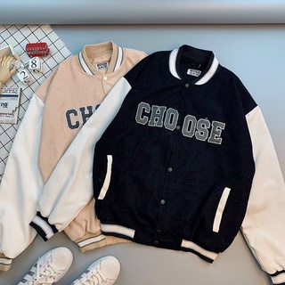 Áo khoác bomber Unisex chất nhung tăm thêu chữ CHOOSE ,form rộng 2 lớp đẹp cho nữ,nam