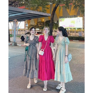 Váy nữ sang chảnh, Váy chun tay bồng ba tầng (Hàng Chuẩn 4 sz S,M,L,XL)