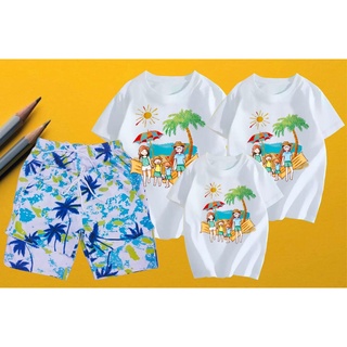 Áo thun gia đình đi biển, đồng phục gia đình, nhóm 3,4,5 người áo thun coton dày dặn, mát mịn - in hình gia đình cây dừa
