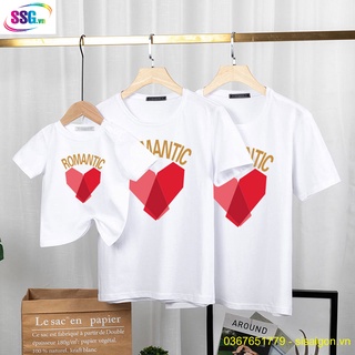 Áo Thun Gia Đình Romantic Trái Tim Đồng phục gia đình 3/4/5 người, áo thun nhóm giá rẻ thun cotton mát mịn, không nhăng