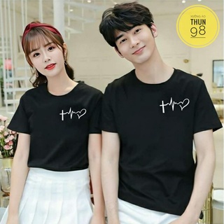 Áo thun cotton cặp, áo gia đình in hình TRÁI TIM NÉT dày dặn, co giãn tốt mặt mịn và mát