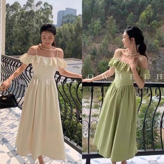 (Có BigSize) Đầm Váy Midi 2 Dây Trễ Vai Bèo