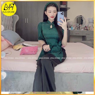 Đồ Lam Đi Chùa Vải Lụa Ngọc Trai Phối Nút Bọc Form Dáng Hot Girl
