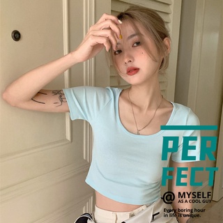 Áo Thun Ngắn Tay Cổ Chữ u Lưng Cao Ôm Dáng Thời Trang Mùa Hè Hàng Mới 2022