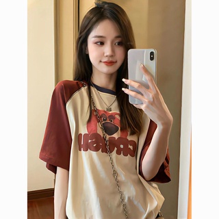 Áo Thun Cotton Raglan Tay Ngắn Dáng Rộng Màu Tương Phản Thời Trang Mùa Hè Mới Cho Nữ