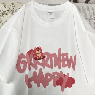Áo Thun Tay Ngắn Dáng Rộng In Hình Gấu Dâu Tây Dễ Thương Thời Trang Mùa Hè Cho Cặp Đôi 2022