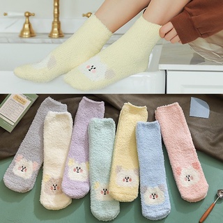 TLB14 Tất len bông cổ cao tất lông cừu trơn hình gấu tông màu pastel nhã nhắn chất siêu dày giữ ấm