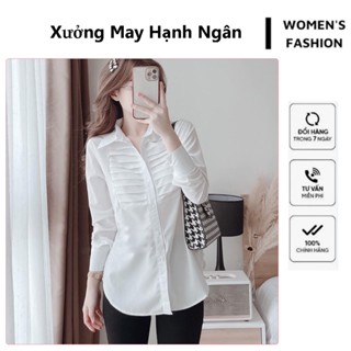 Áo sơ mi trắng HANNA kiểu xếp ly ngực tay dài công sở nữ Xưởng may Hạnh Ngân HN016