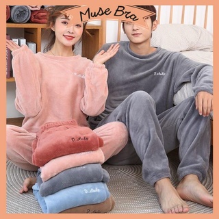 [Giá sỉ] Bộ Nỉ Bông Mặc Nhà Mùa Đông Cho Nữ Siêu Ấm, Quần Bo Gấu Vải Mềm Nhẹ Thêu Chữ D'studio
