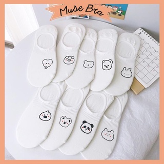 [Giá sỉ] Một đôi tất hài cotton gân màu trắng hình thú ngộ nghĩnh có đệm silicon gót chống tuột