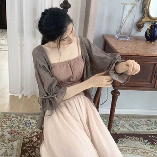 M & E Set Áo Sơ Mi Voan Chống Nắng + Váy Yếm + Quần Ống Rộng Phong Cách Cổ Điển Dễ Phối Đồ Mùa Hè Cho Nữ