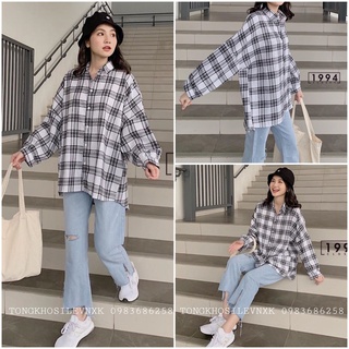 ÁO SƠ MI NAM NỮ KẺ MÀU LẠ FORM THỤNG TO ULZZANG - ÁO KHOÁC SƠ MI CARO XÁM TRẮNG TAY BỒNG