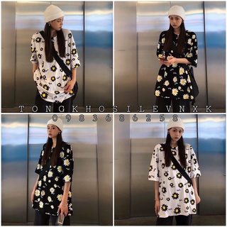 ÁO PHÔNG HOA CÚC LOANG ĐEN TRẮNG HOẠ TIẾT IN CHỮ HOT