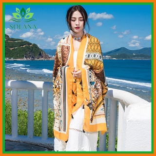 Khăn Boho Vintage Cao Cấp Vàng, Khăn Choàng Đi Biển Phong Cách, Chất Liệu Đũi Dày Dặn và Mềm SOLANA